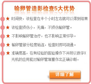 输卵管造影可清楚、准确的检查输卵管走向及扭曲状态,如见输卵管细长呈串珠或僵直状为结核性可能。