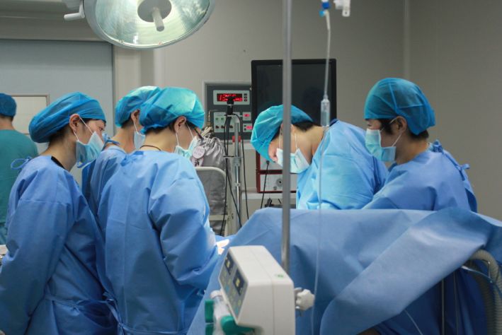 下午2点的时候王女士被送进了产房。产房随即启动了提前制定的分娩计划,同时手术室也做好了应急准备。王女士虽然是生二胎,但却是头一回试产,疼痛紧张让她很焦虑,麻醉科医生为她打完无痛针后才有所缓解。助产士邓梦兰老师就一直在身边鼓励我,带我做蹲起动作,帮我转换体位,进行调整。”王女士回忆到。产房里的试产还在不停地艰难进行着,此时的手术室却紧张地待命,一旦试产失败,手术室就要第一时间进行顺转剖手术。
