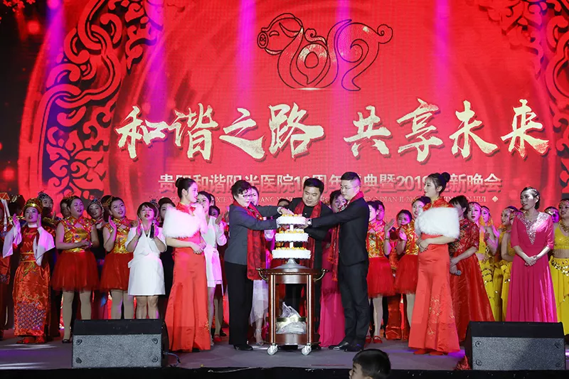 在一曲温暖而熟悉的《生日歌》中,礼仪小姐缓缓地推上生日蛋糕,贵州和谐远大集团董事长陈德龙先生、贵州和谐远大集团执行董事郑福荣先生、贵阳和谐阳光医院院长焦爱萍女士共同为本次晚会举行了切蛋糕仪式,表达了对和谐阳光医院的深切祝福,也预示着和谐阳光医院的明天会更加美好!