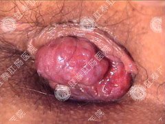 2、脱出:由于痔核体积增大,排便时受到粪便的挤压,使其逐渐与肌层分离而脱出肛外。初仅在排便时脱出,便后能自行复位。症状较重者,脱出后需用手推回或卧床休息才能复位。症状严重者,凡用力、行走、咳嗽、喷嚏、下蹲等都可能脱出。
